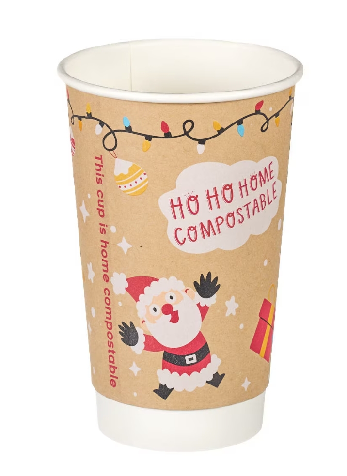 Christmas-Themed Compostable Hot Cups